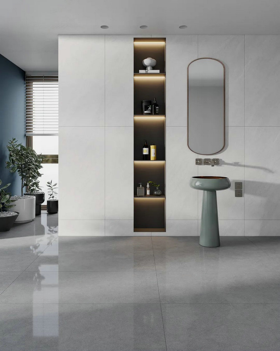 通體大理石瓷磚磚面亮度達到90°以上,一如清澈見(jiàn)底的水潭,似鏡無(wú)波,更顯晶瑩,映襯著(zhù)大理石紋理纖毫畢現、潤澤通透。